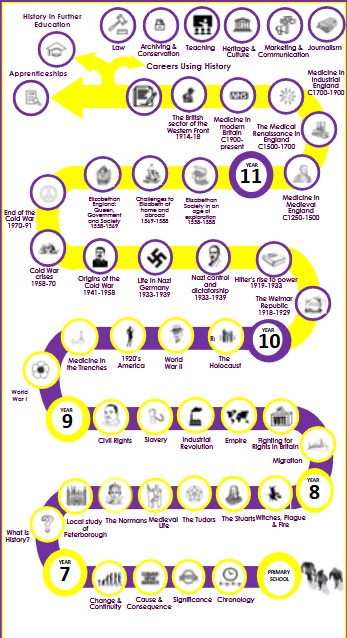 Pupils studying History will undertake a thematic study of British medicine through time, which will include an in depth investigation into medical advances in the trenches during World War I. The modern depth study is Weimar and Nazi Germany (1918-1939), which considers the impact of World War I, the rise of the Nazis and life in Nazi Germany.
